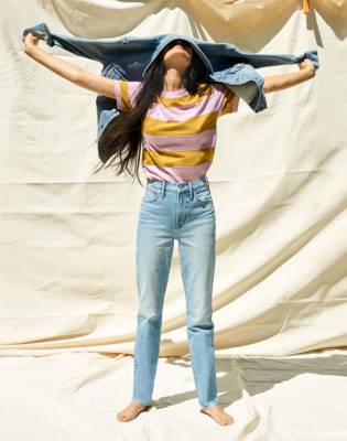 What about the Rio Slouchy Cut jeans by 3×1? These jeans are also the talk of the town in 2021. The cloth is mid-weight, non-stretch denim. It has a high-rise shape and is faded and whiskered.